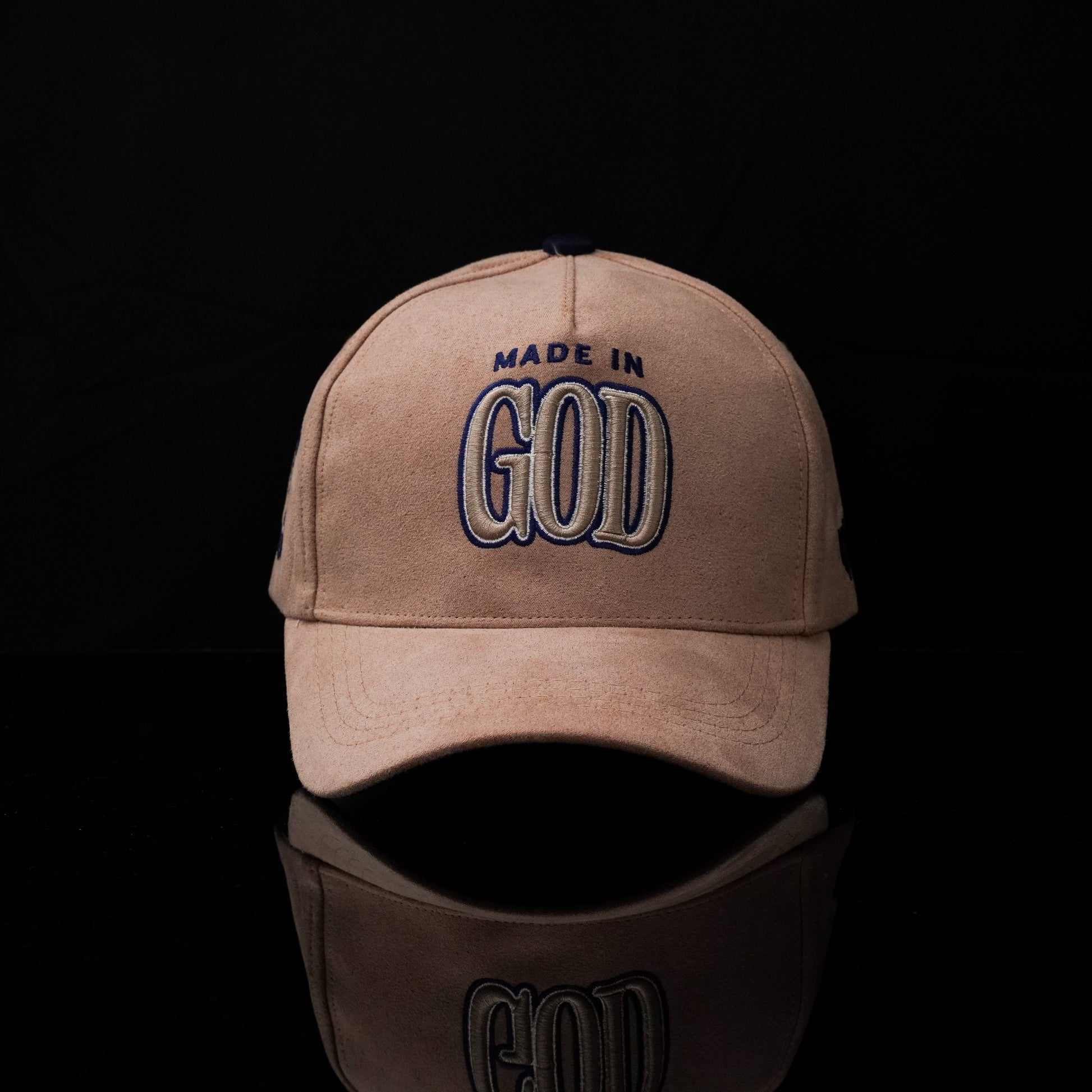 Gorra MADE IN GOD confeccionada en gamuza premium con detalles de bordado 3D en la parte frontal y laterales. Cuenta con bordado adicional en la parte trasera y un diseño exclusivo con texto significativo en el interior de la visera. Una pieza versátil que combina calidad artesanal guatemalteca con un mensaje inspirador, perfecta para expresar tu estilo personal con flow y propósito.